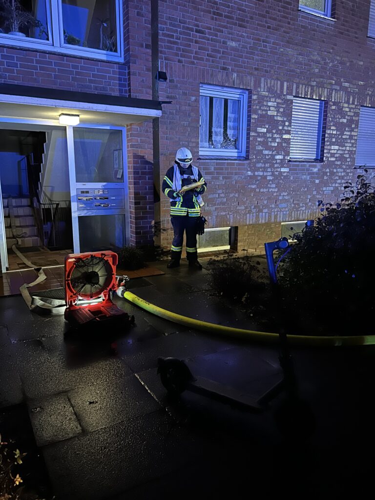 Die alarmierten Einsatzkräfte stellten umgehend die Wasserversorgung her, während ein Einsatztrupp unter Atemschutz die Wohnung überprüften und den defekten Scooter entdeckten. Das zerstörte Gerät wurde umgehend aus dem Gebäude gebracht.