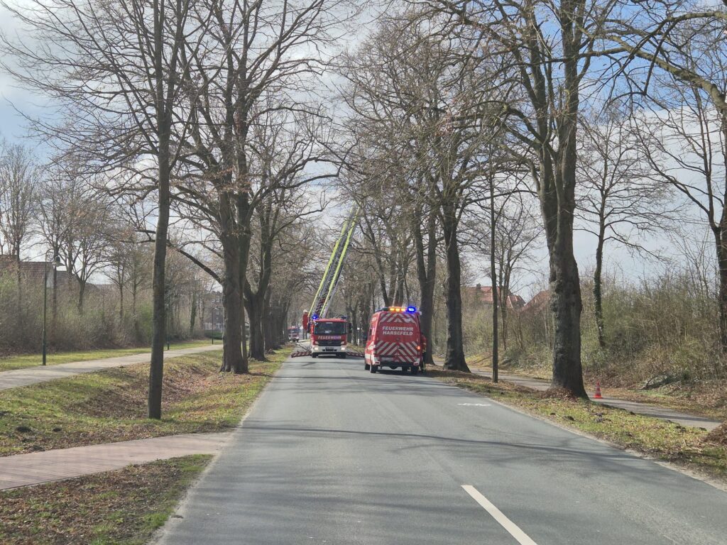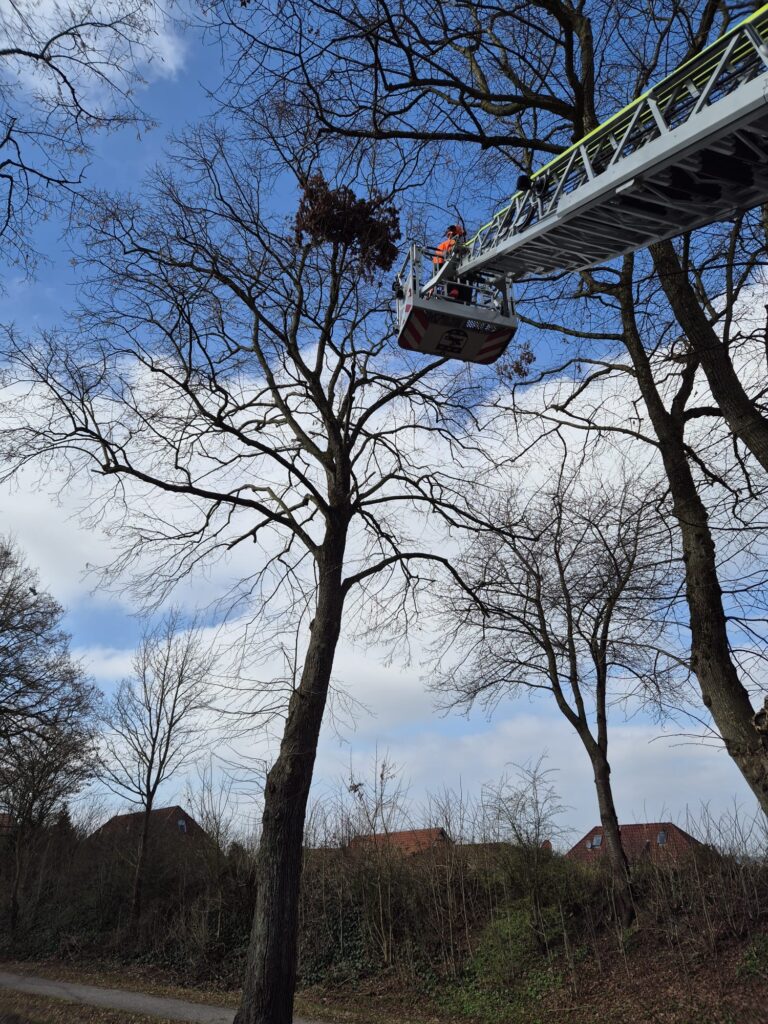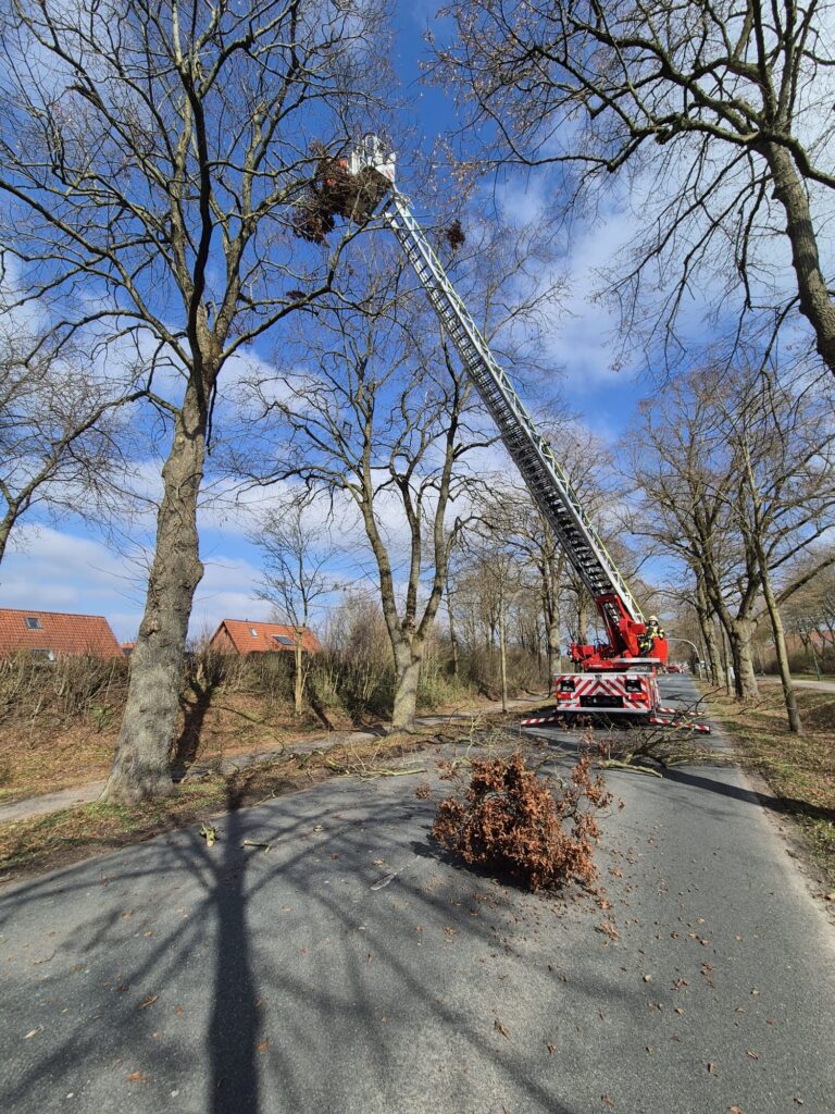 Der Bereich der Buxtehuder Straße, zwischen Handelsweg und Hellwege Allee, musste für rund 1,5 Stunden gesperrt werden, da mehrere Äste, im Bereich des Straßenabschnitts, zu fallen drohten. Über die Drehleiter mussten die Einsatzkräfte Äste aus dem Baum entfernen.