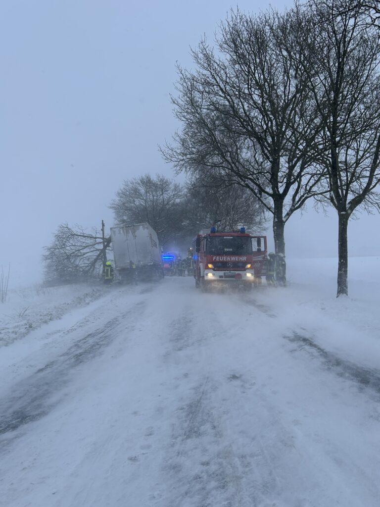 Bei starken Schneetreiben waren rund 35 Einsatzkräfte der Feuerwehren aus Ohrensen und Harsefeld, sowie Beamte der Harsefelder Polizei, ein Rettungswagen des DRK sowie der alarmierte Notarzt vor Ort.